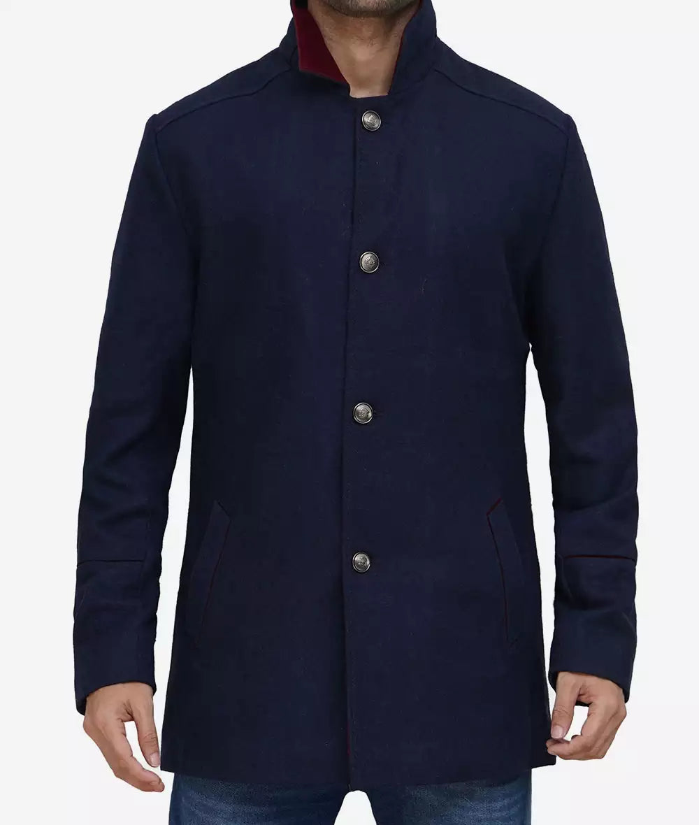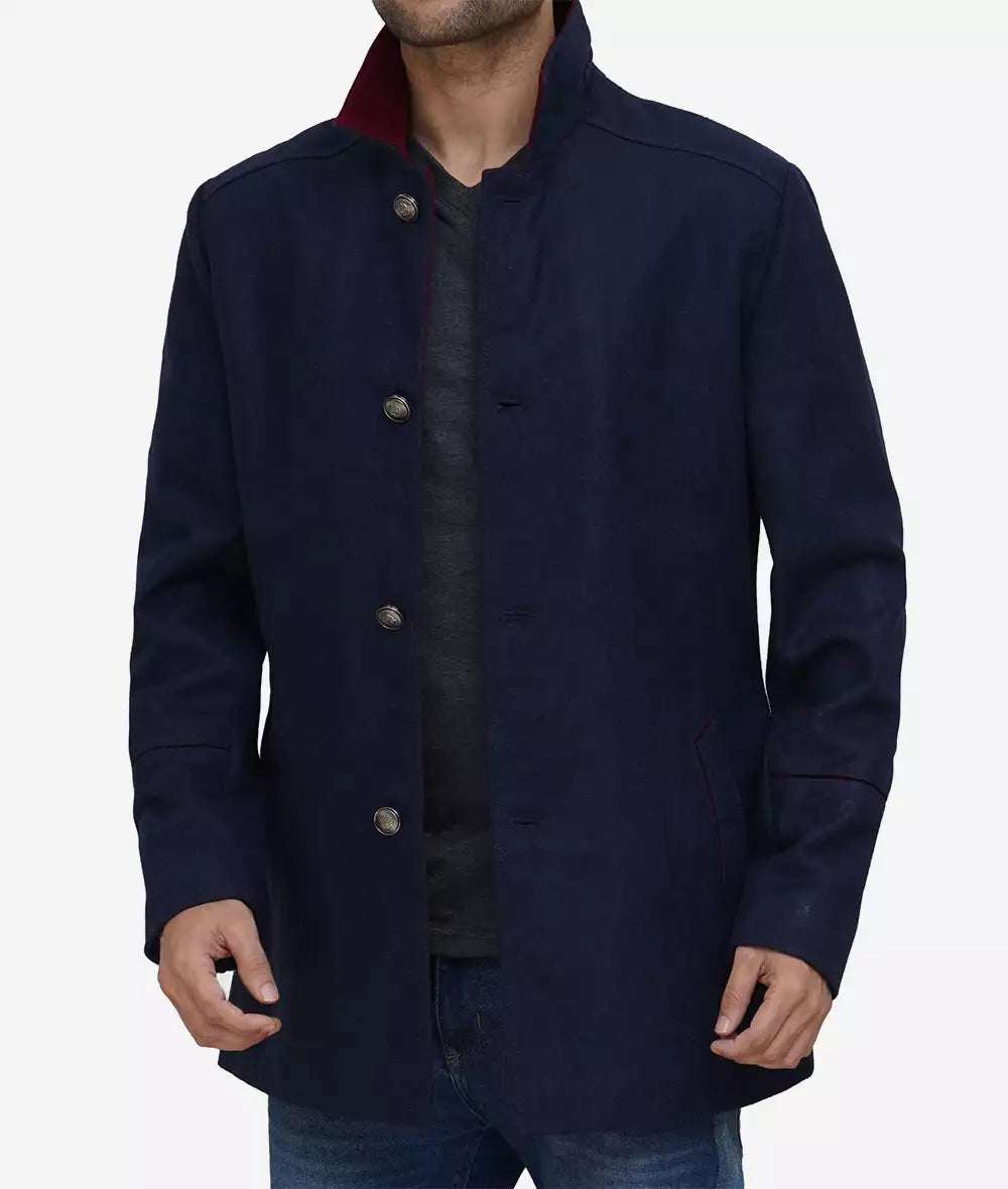 Roy Men’s Navy Blue Stylish Fit Wool Car Coat